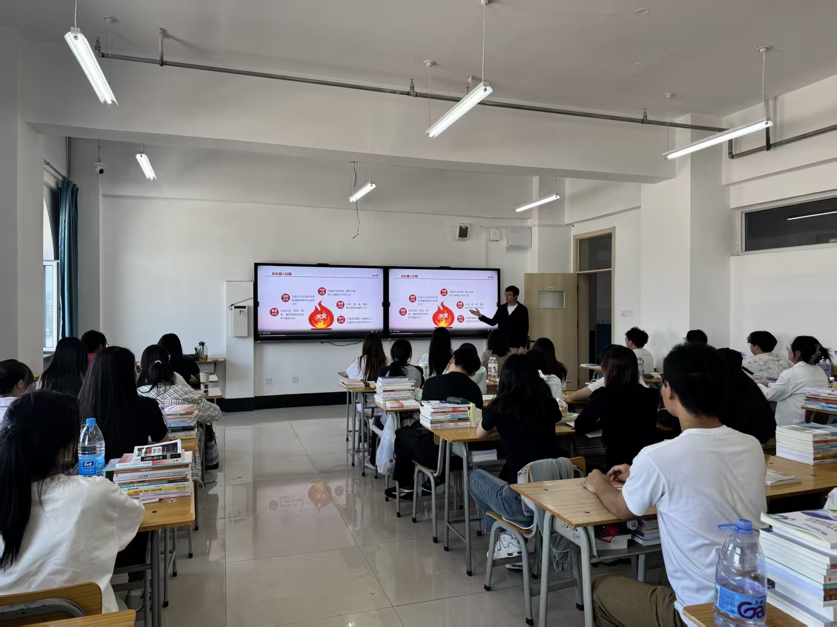 谈及防火安全,刘巍老师结合高校实验室火灾典型案例,阐明易燃试剂存储规范、明火操作禁令等关键要求,着重介绍消防器材(如灭火器、消防栓)的配备标准及日常维护要点,要求师生熟练掌握火灾逃生流程,提升应对突发事件的实操能力。讲解过程中,刘老师穿插互动问答,引导师生思考、巩固安全知识,让“安全规范”真正入脑入心。