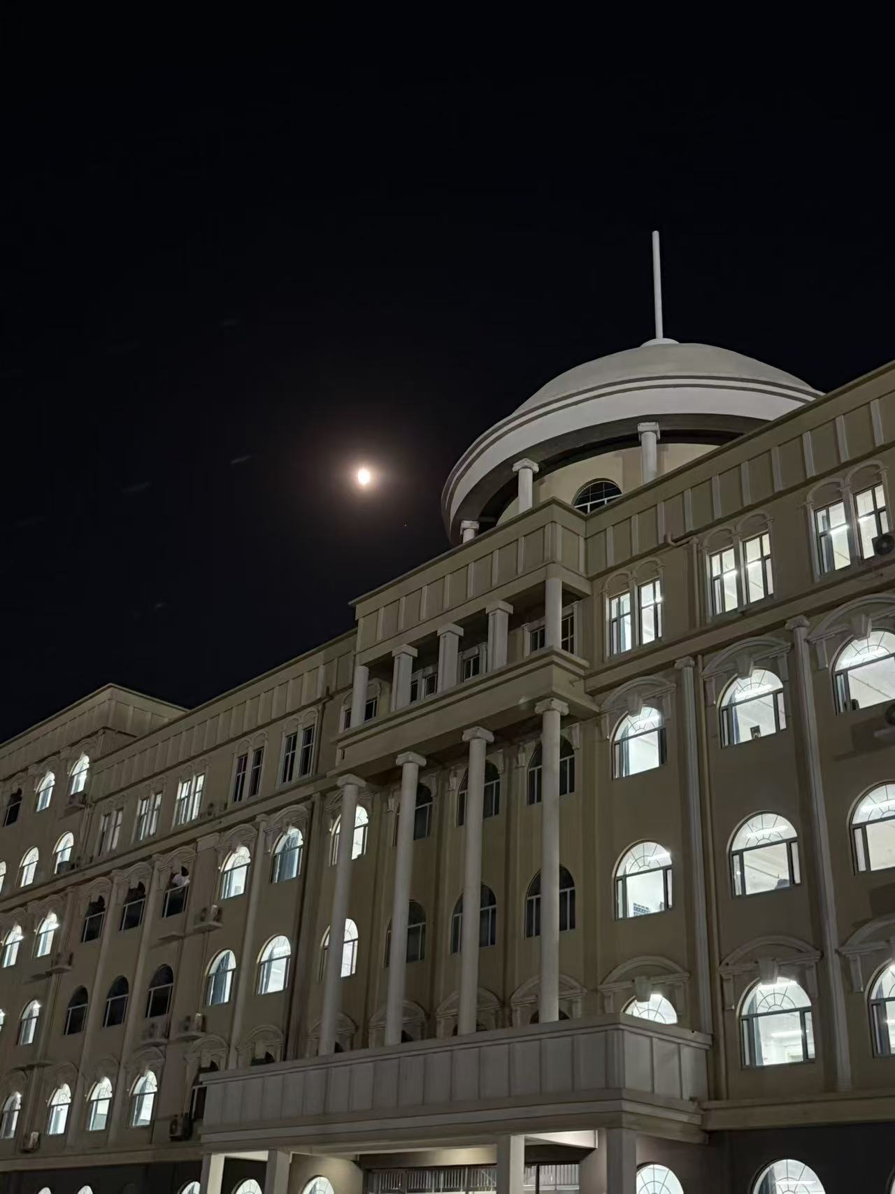 晚风拂过操场的白栏杆,星光也跟着晃了晃,又飘向不远处的油松,在叶尖跳了两下,便稳稳停在正低头记笔记的同学发梢。没有城市霓虹的热闹,这束星光就安安静静待着,陪晚归的学子走过操场,也为未熄的灯火,添了一抹温柔的注脚。